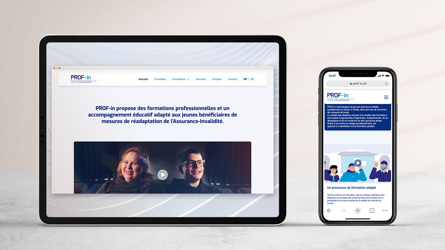 Ein 360°-Projekt von grossem Umfang: neue Website, Erstellung von Inhalten für die sozialen Medien, Fotos für jede Ausbildung und das breite Angebot des Zentrums, ein Film, der das interne Leben bei PROF-in durch die bewegenden Aussagen zweier Lehrlinge darstellt, und ein didaktischer Film im Motion Design, der den Eltern und zukünftigen Lehrlinge die Tragweite der Ausbildung und der Betreuung erklärt.