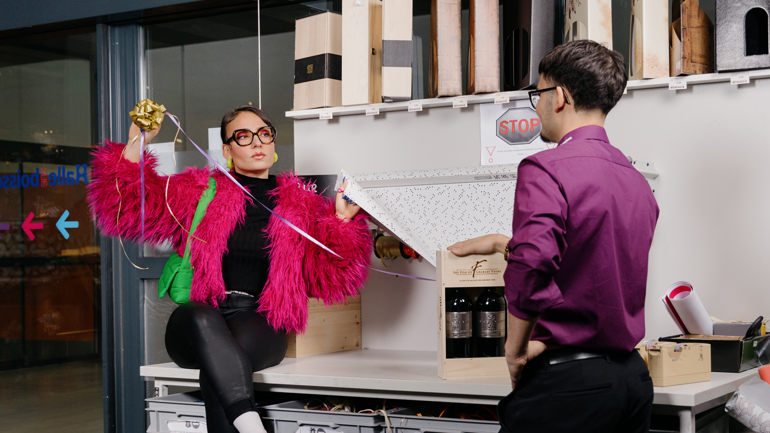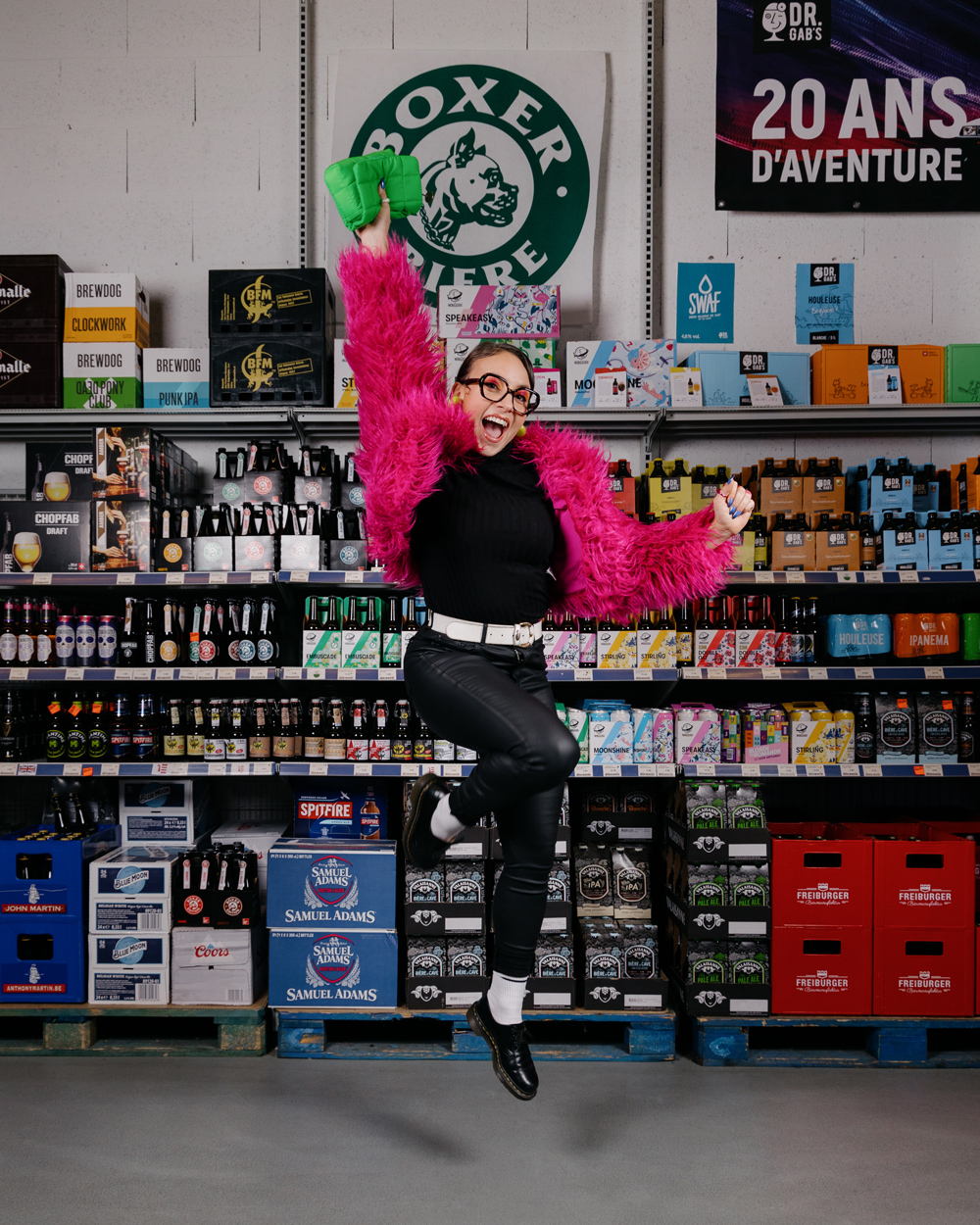 By first inventing an icon, the Mixologist. Completely extra, she embodies with extravagence and humour the potential of the Halle aux boissons offer and advices. You too can become the star of cocktails! It's all about colours in this campaign. A colourful character, colourful clothes, make-up, drinks and several light effects on the shooting's set up.